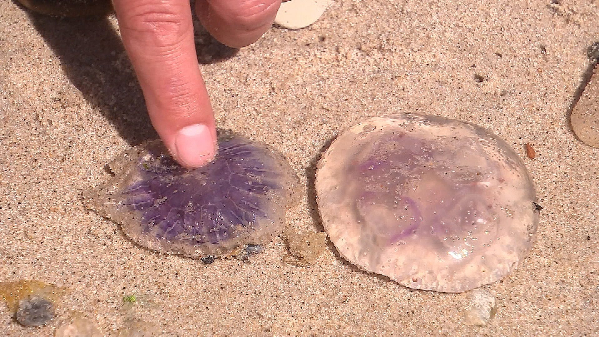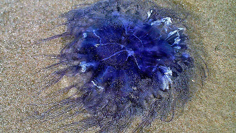 Blå brandmænd invaderer vestkysten - Vær forsigtig når du bader. Den blå brandgople Cyanea lamarckii er mindre op til 15 cm i diameter i Danmark men den brænder ligesom den røde. Vandmandens nældeblærer brænder ikke mennesker.